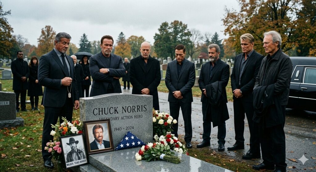 チャック・ノリスさんのお墓に集う往年のアクション俳優たち、すごいメンバーですね。